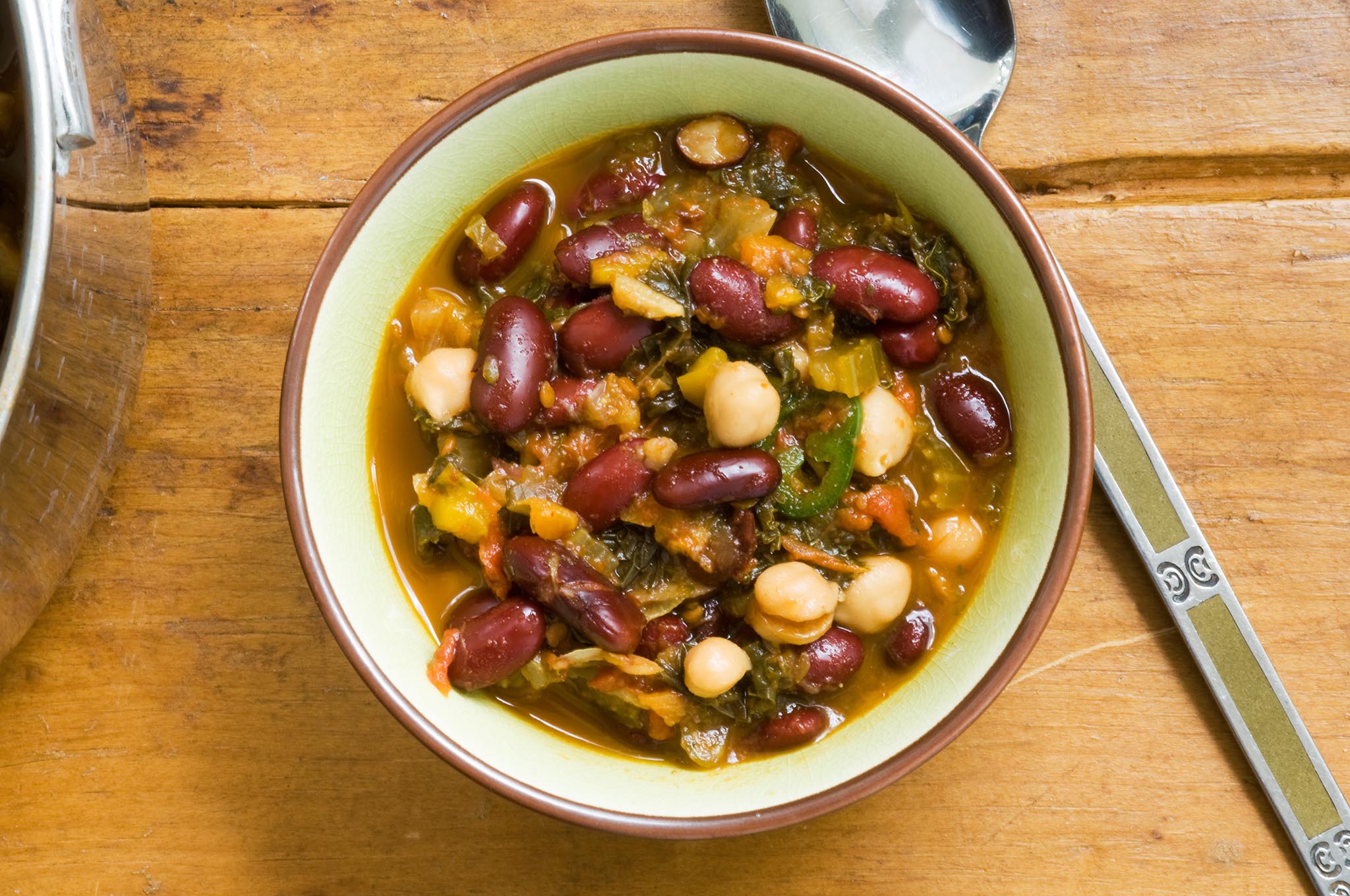 Spoon 1 1/4 cups chili into each of 4 bowls; top each serving with 1 tablespoon sour cream, 1 tablespoon cheese, and 1 teaspoon cilantro.